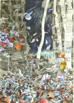 Tusche, Kohle und Aquarell auf Papier, 59 x 42 cm, 2022